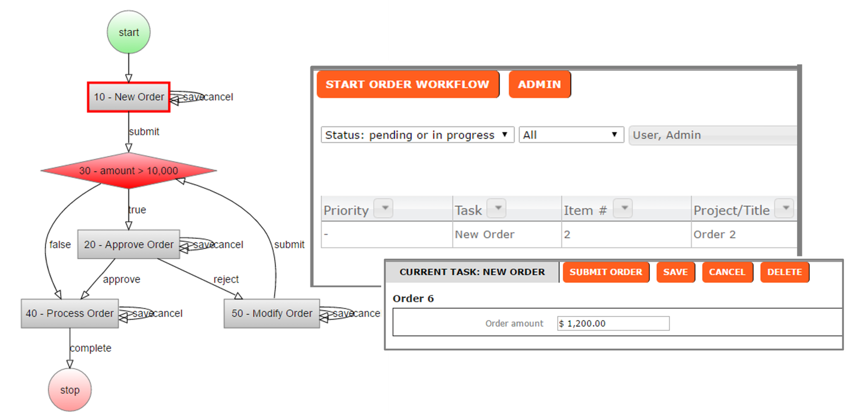The Workflow Module is usually deployed with the Starter App Framework as the means of giving users visibility into the tasks that have been assigned to them, task status and the ability to open a task, complete it, and progress through the managed workflow. The tasks managed by the WFF are typically implemented in LogicNets as projects built on either the base system or one of the frameworks, such as the ASF.